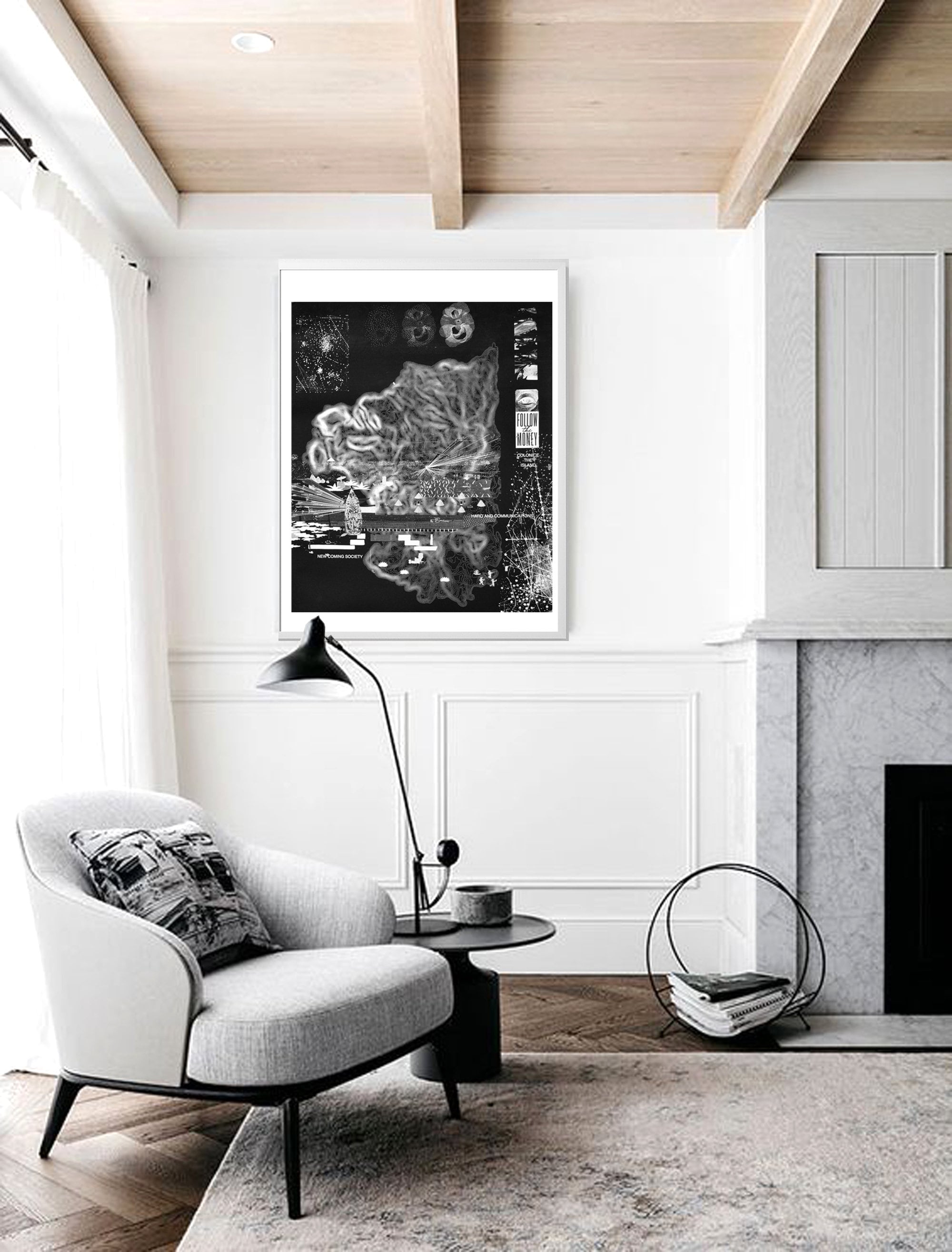 FOLLOW-MONEY. Sardinia Map, Illustration, Digital Art. Abstraction, Landscapes, Radical Utopias.